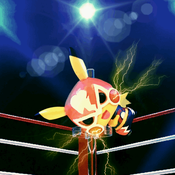 Customizing a Pikachu pop with the Pikachu Libre outfit form Pokken Tournament DX.