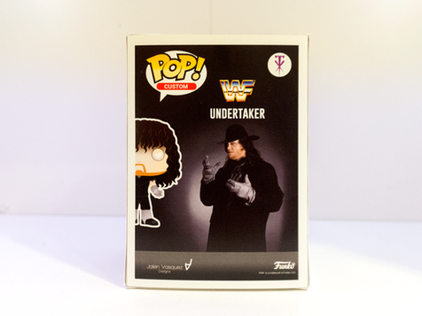 This is a 1 of 1 commission of the Undertaker. Funko has made a few variations of the deadman, but this one is based on his first appearance with purple gray gloves and boots.